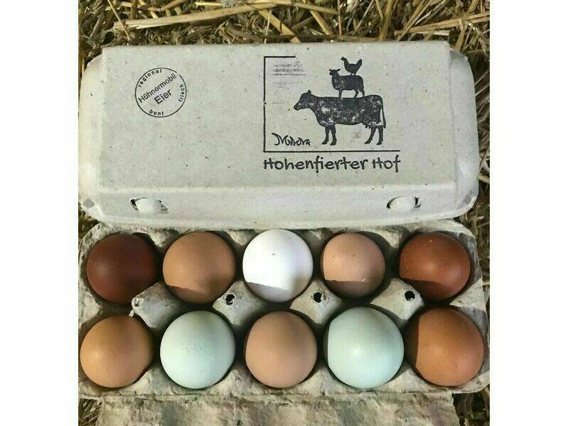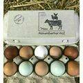bunte Eier von unseren Hühnern aus dem Hühnermobil. Die Eier werden nicht von uns gefärbt, sondern von den Hühnern so gelegt. Ein echtes Highlight auf dem Frühstückstisch !