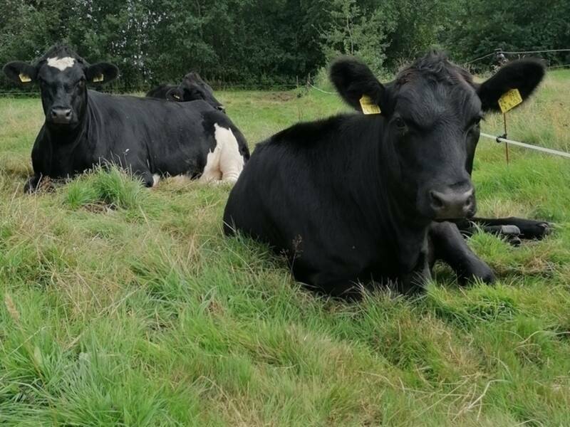 Alle unsere Rinder werden GVO frei (also ohne gentechnisch veränderte Futtermittel) gefüttert .